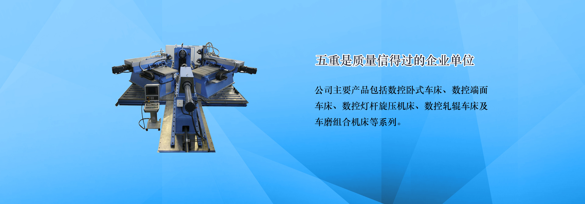 青島五重數(shù)控機(jī)床有限公司(原青島第五重型機(jī)械廠)是一家集科研,生產(chǎn),銷售為一體的數(shù)控機(jī)床生產(chǎn)企業(yè),主要產(chǎn)品:端面車床,數(shù)控端面車床,車銑復(fù)合機(jī)床,車磨組合機(jī)床,膠輥磨床,地磅遙控器,數(shù)控旋壓機(jī)。連續(xù)多年被評為青島市信用企業(yè)、質(zhì)量信得過單位。公司位于青島國際中小企業(yè)工業(yè)園,地理位置優(yōu)越,距流亭飛機(jī)場僅10公里,濟(jì)青、榮烏、青威等多條高速公路經(jīng)過,交通十分便利。... [MORE + ]
